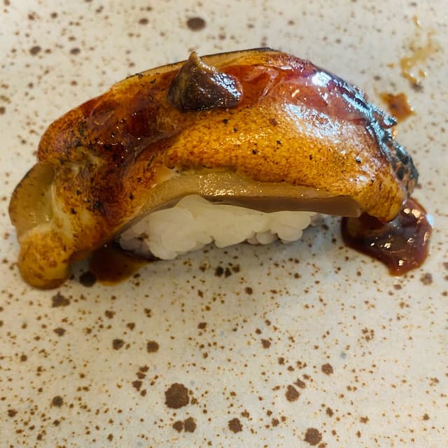 😋 Didn’t expect the shapes of the watermelon 🍉 -very flavorful and the carrot 🥕 to be mashed . Lovely spinach gomae . Not sure exactly what the unagi plant based eel would be 🤔