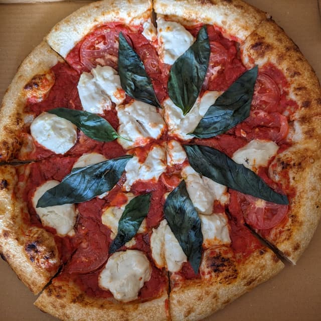 Olga239 reviewsWe stopped by Pulse Cafe for lunch today. Since they have a wood fire oven, we opted for the Margarita Pizza. The crust looked great, but unfortunately the middle of the pizza was really soggy and doughy, couldn't pick it up and had to eat it with a fork. The taste was good, maybe just a touch bland. I liked the flavor of the cashew cheese sauce. Overall, I'm thrilled that there is a plant-based restaurant relatively close to us.Margherita Pizza