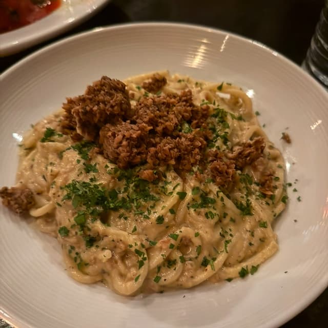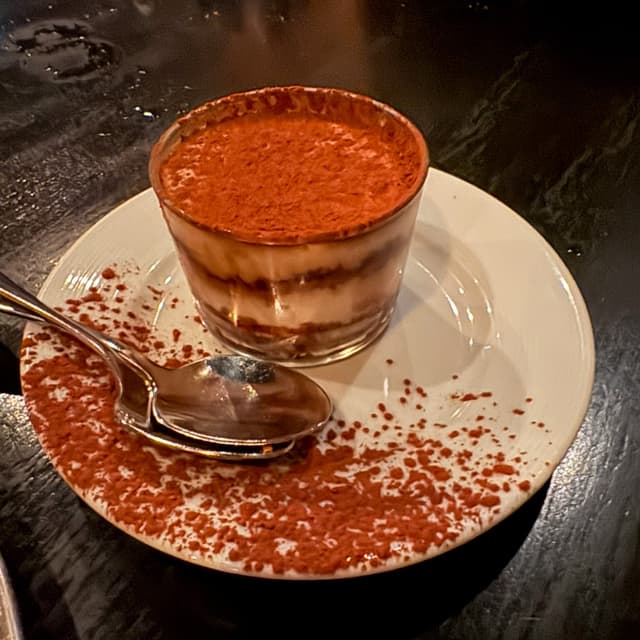 Incredibly tasty tiramisu! I was just sad that the portion size was so small, it was smaller than a tiramisu slice you would get in Italy that costs half less . 🥲 price was $16. Pura vita is a fully vegan restaurant.