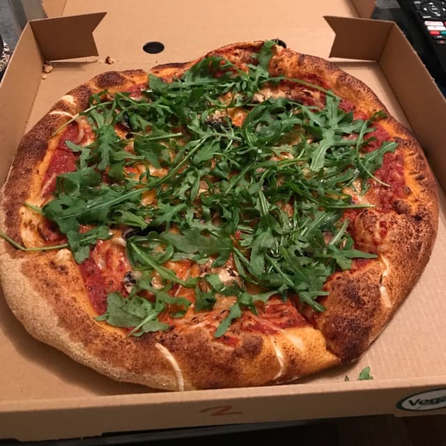 Kate Louise Powell2,125 reviewsReally impressive pizza with a nice chewy base and a good combination of toppings - meatballs, sundried tomatoes, red onion, olives (they seemingly forgot the pine nuts but oh well....) Good value seeing as though they always seem to be 50% off (£9 instead of £18) 🍕Vegan Royale Meatball Sourdough Pizza