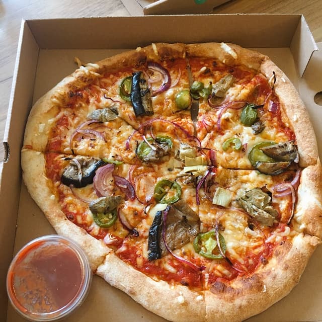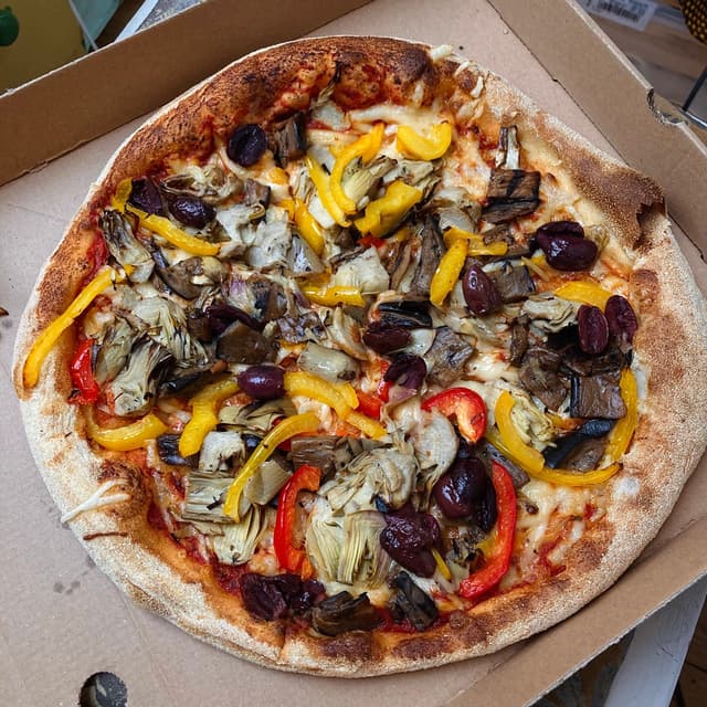 Kate Louise Powell2,125 reviewsReally great pizza, the vegan cheese is good and you get to choose 4 toppings - I went for artichoke, aubergine, jalapeños and red onion. The base it nice! It’s good value when you get it with a Cheaper MENU code - too expensive with no discount #huntsabsVegan Cheese Hearty Wholemeal Craft Your Own 12” Pizza