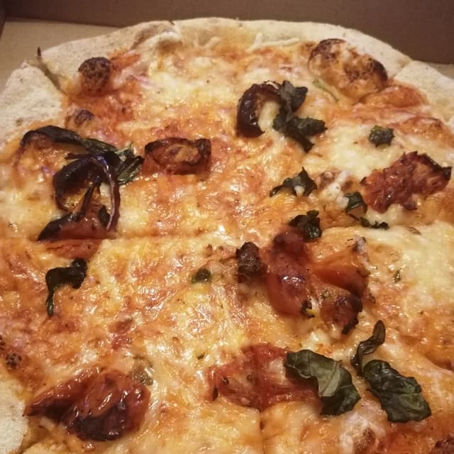 shoey130 reviewsthe dough was ok, although as you can see they added basil BEFORE cooking the pizza so it got a bit burnt. the pricing policy of the place is an interesting one, maybe I have to experiment more with other toppings to see if this place fully convinces mevegan margherita royale