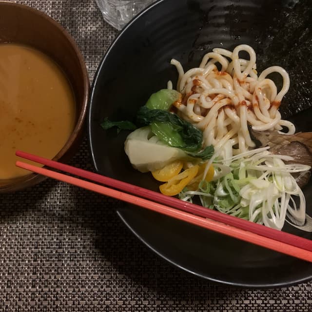 bebibi470 reviewsRamen con funghi cardoncelli, kumquat fermentato, mais (che ho fatto togliere) cipollotto e alga nori, servito con brodo tiepido al miso, burro di arachidi e peperoncino fermentato. A fir poco divino. Il brodo tiepido è qualcosa di surreale. Una combinazione perfetta tra sapidità, piccantezza, ecc.. buonissimotsukemen: Ramen estivo con funghi cardoncelli, kumquat fermentato, mais, cipollotto e alga nori, servito con brodo tiepido al miso, burro di arachidi e peperoncino fermentato