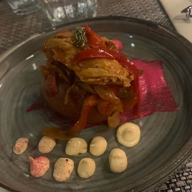 bebibi470 reviewsSpecial di ferragosto che spero diventi un antipasto da inserire nel menù. A mio avviso, rientra tra gli antipasti più buoni del ristorante. Peperoni succosi e cotti al punto da sciogliersi in bocca. Buonissimo!maritozzo Con Pollo E Peperoni