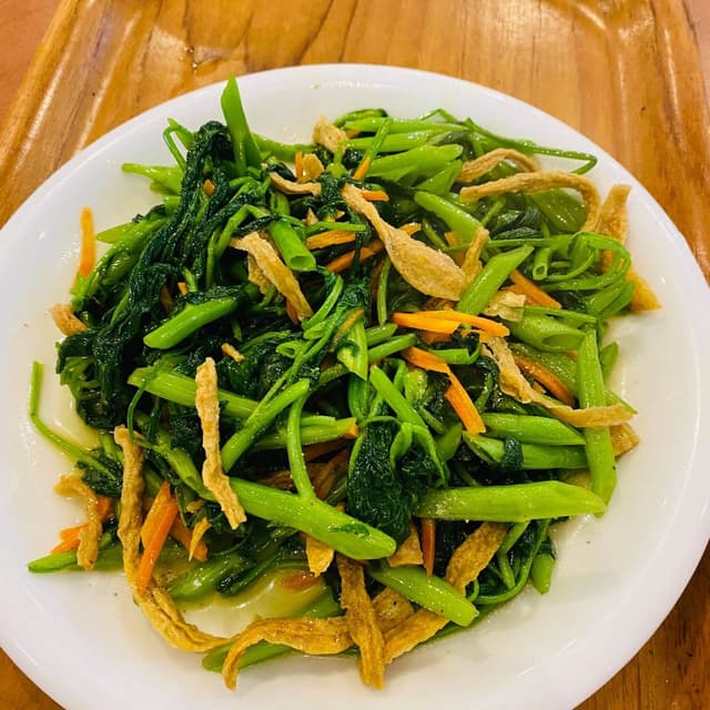 Poppy216 reviewsFind this affordable meal in Berkah, west Kalimantan, it is kangkung with wortel #veganin2020Stir fry Water spinach