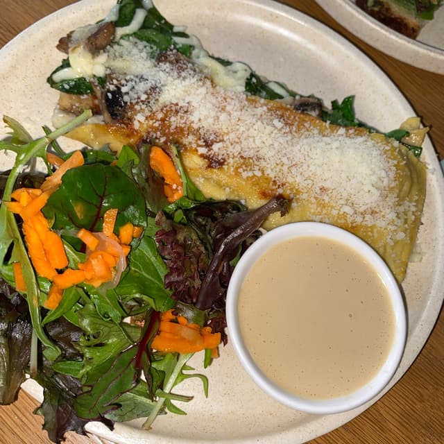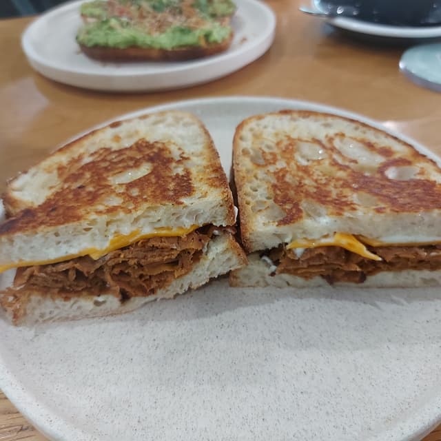 Delicious vegan ham and cheese toastie! Generous portions of vegan ham, and decent quality cheese and mayo. The bread was super fluffy on the inside, and crispy on the outside 🤤