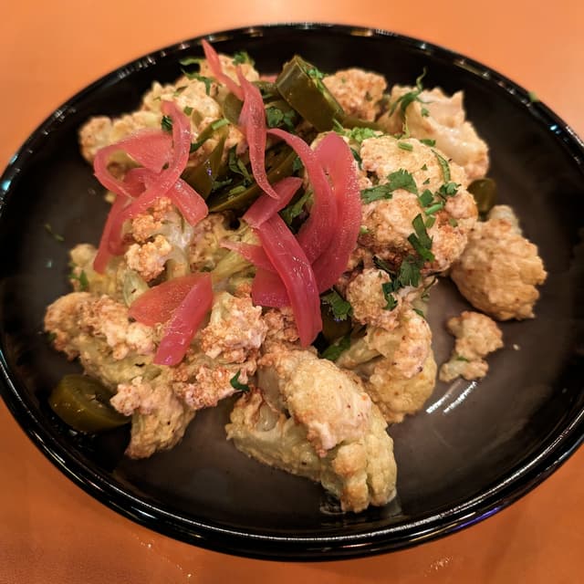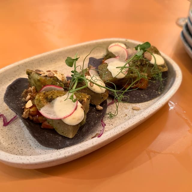 There were parts of this that were outstanding. The crispy #kale for example 😋 The #pumpkin sauce. The crispy #kale too 😋 The pickled #onion dovetailed well with everything else. As did the crispy #kale 😋 I liked the #spicy touch provided by the #jalapeno. And I liked the crispy #kale 😋 The #enchilada had a texture that I didn't quite appreciate. But I liked the crispy #kale 😋