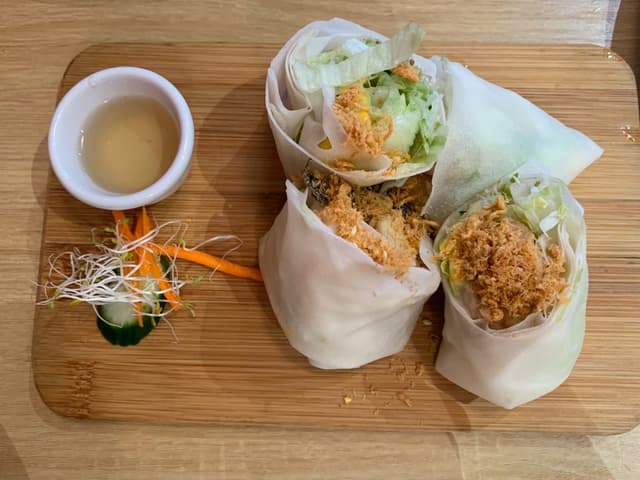 The dish wasn’t spectacular or something to go crazy over. It had lettuce, alfalfa, a small soy protein nugget to top it off and a little bit of artificial meat floss for decoration. It was alright, I wouldn’t order it again