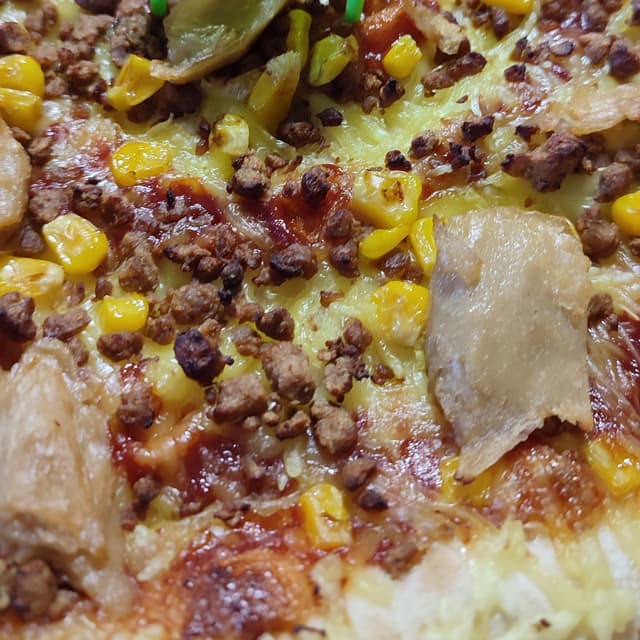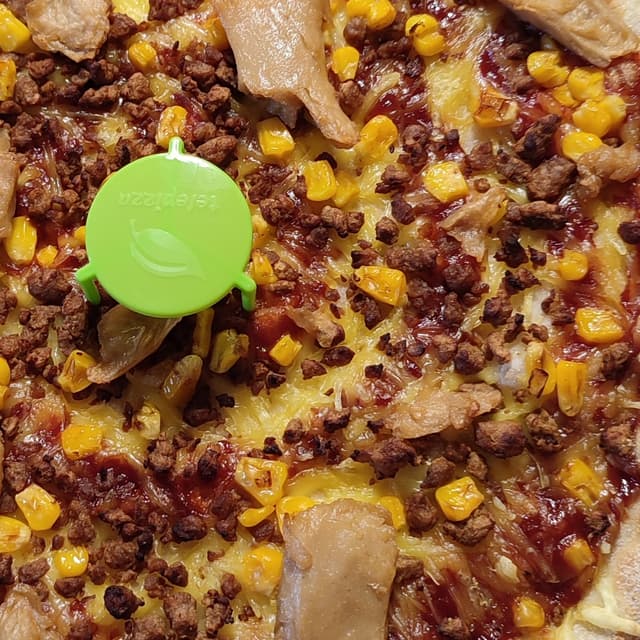 This vegan pizza is very nice too. It's cheesy and has all the mushroom, onion and vegan chicken bits you need.