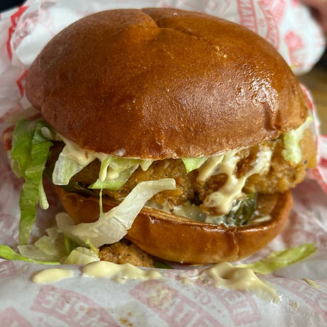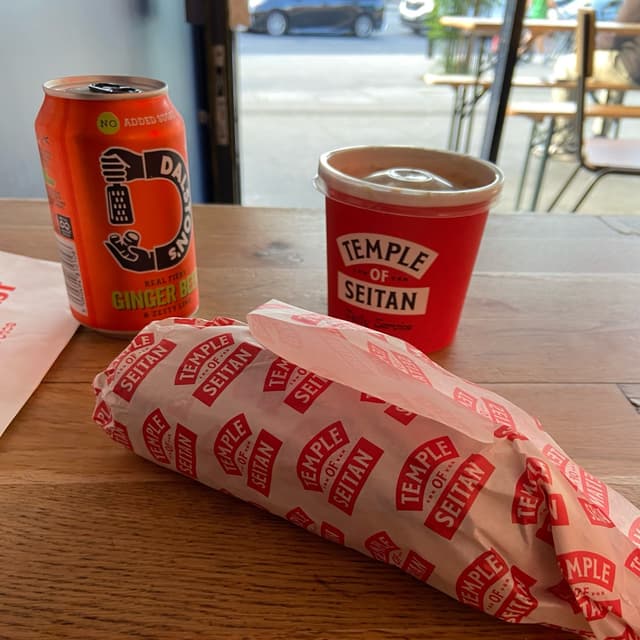 Fully vegan seitanic temple in Hackney. They do burgers, wraps, vegan seitan pieces, also loads of sides, sweets, milkshakes and maybe a salad or two. Major allergens are specified, and you can specify allergens, request add-ons or items to remove when placing your order (online). You can also place your order online and pick up when you arrive. Plenty of meal deals as well. The Hackney temple is open til late, and close to important live music venues.