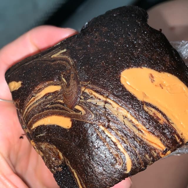 This brownie looked super promising, however I must say I was a little disappointed. It was moist, rich, and had a nice creamy peanut butter topping, but it was not a chewy brownie. It was more like a dense chocolate cake. In my opinion brownies shouldn’t crumble, they should chew.