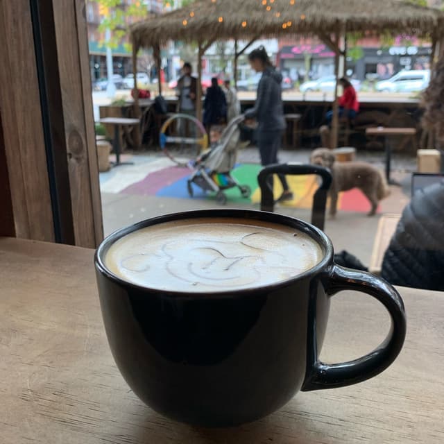 El lugar era hermoso!! Súper acogedor. El café excelente y tenían leche de almendras, avena o soja; yo elegí de avena.