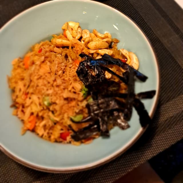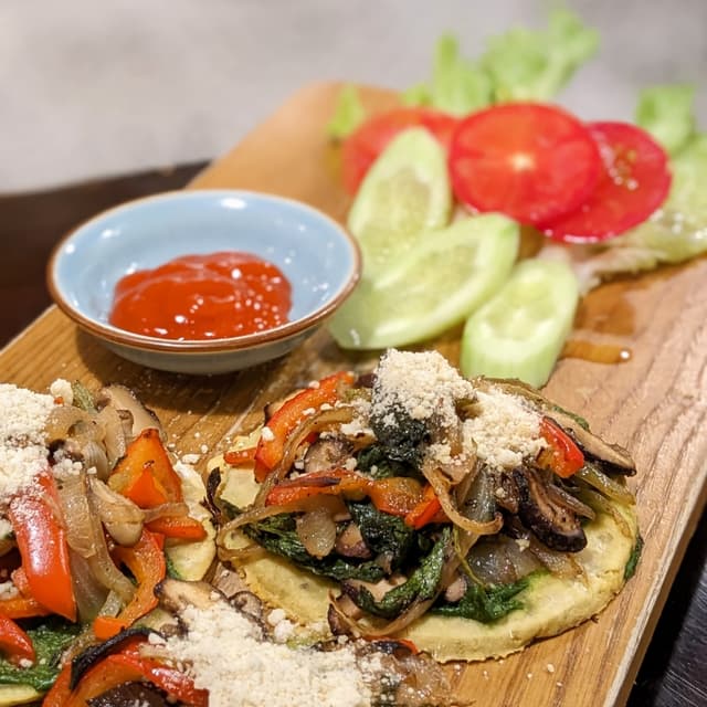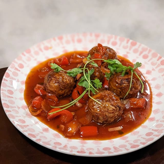 Housemade whole-food plant-based meatballs consisting of a mix of finely minced tofu, taro, mushrooms, sweet potato, and carrot, cooked alongside red bell pepper and onion in tomato sauce. 🍄🥕 Grilled on the outside, while soft and tender on the inside without falling apart too easily. Pretty good texture and umami flavour despite being made using wholesome natural ingredients! Came with a choice of rice - steamed coconut rice, red rice, or white rice. 🍢🍚 (85,000 VNĐ) #vietnamese #vietnam #veganvietnamese #wholefoodplantbased #wfpb