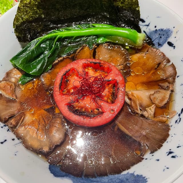 This was a delicious shoyu-based ramen with perfectly cooked mushrooms and vegetables. The broth was very flavourful and the chanterelle oil really took it to the next level! #shoyuramen #veganjapanesefood #veganinmalaysia #veganramen #ramennoodles #mushroomlover