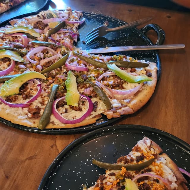 ilse646 reviewsRica pizza de chile en nogada 🌶 🌰 🍕 🍏 me encanto que traía tempeh ! <3 la masa súper delgado ya le fascinaPizza en Nogada