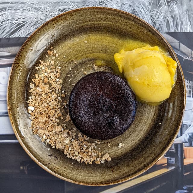 Tortino vegano al cioccolato fondente accompagnato da muesli croccante e da una pallina di gelato al mango, unico gusto disponibile senza latte. 🍫 Il tortino è molto morbido e dolce, buono anche il muesli e l'abbinamento con il mango è perfetto! Un dessert ottimo per concludere il pasto! 😋 #chocoholic #veganchocolate #mango #veganicecream #dairyfreeicecream #muesli #vegandessert #darkchocolate #veganin2023 #govegan #veganfood #alicantevegan #alicante