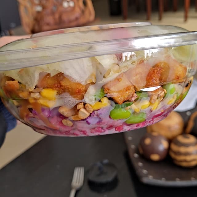 Probably my favourite meal on earth and the thing I miss most about living there. Tofu ("Naughty" option of panko and tempura fried) in a bowl with Asian Slaw, Roasted Cashew Nuts, Edamame Beans, Cherry Tomatoes, Sweet Corn, Red Onion Marmalade, Spring onion, Iceberg Lettuce & Sesame Seeds, on a Base of Beetroot Infused Sushi Rice, and garnished with Guacamole & Nori Seaweed Flakes. Beautiful, colourful, fresh, delicious and a big portion for a great price. The pictures don't do it justice. It has everything... taste, textures, variety and the friendliest staff. They have a bunch of super original dishes. Takeaway only. Open til 8pm every day. Love these guys.
