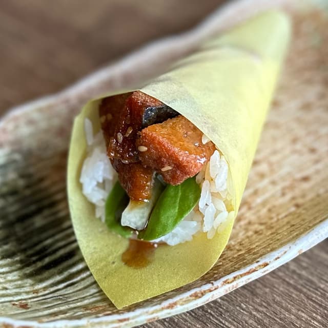 Patrick L. Williams103 reviewsVegan eel(soy), cucumber, soy wraps. So good it was almost scary.Unagi Hand Cone