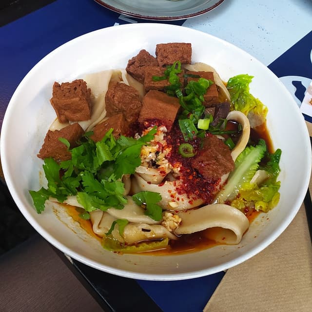 I'm so in love with their biang biang aubergine noodles! First time I had them there was some soy mince as well, but now I rarely find it in the recipe. If it's the first time you eat here please notice that the spiciness is actually quite high (I love it so I'm fine with it but I've seen people suffering) 💸 €15,50 #veganinberlin #biangbiang #welikeitspicy