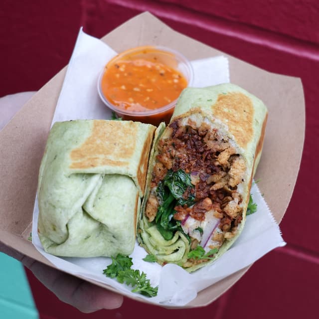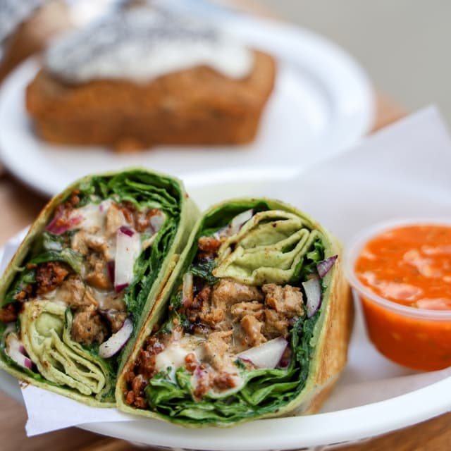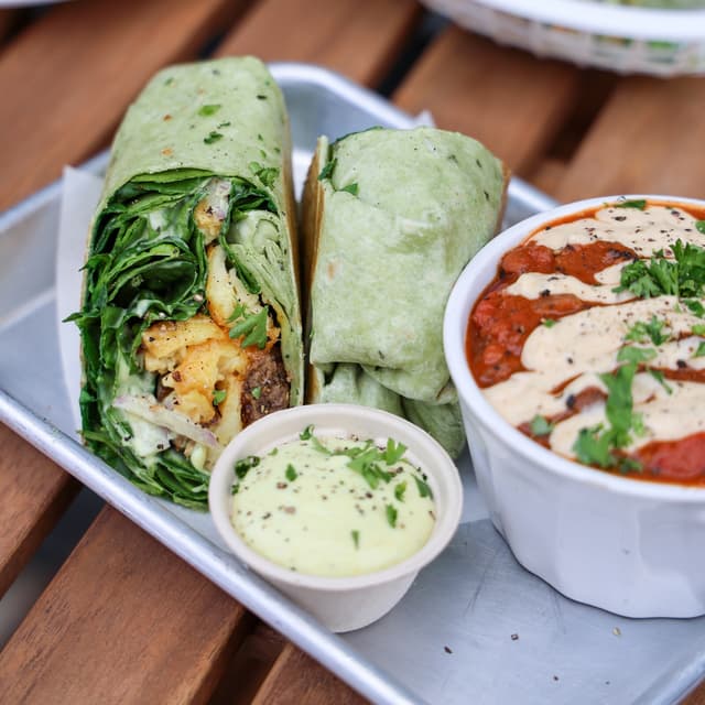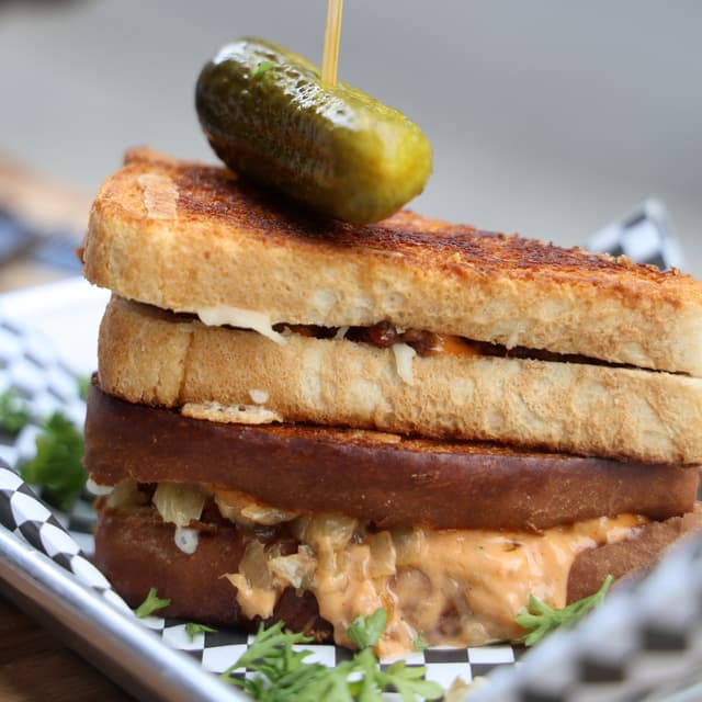 The Frisco Melt is a Woodhouse OG and staple menu item. It has two #beyond Steak 'n Shake style patties, toasted #vegan cheddar + swiss, caramelized onion + house made frisco sauce on grilled locally sourced bread. It even comes with a pickle on top. This sandwich is so delicious and the caramelized onion really makes the sandwich great. The price tag $16 is reasonable considering it has two burger patties and the sandwich is also really big! #vegan #abillionlove ##eattherainbow #womenowned