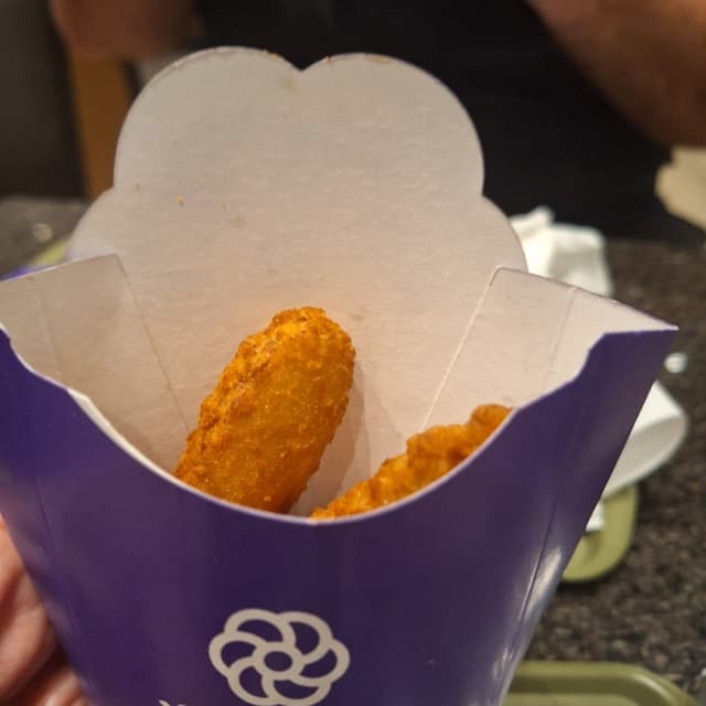 Eles vem com o chicken Bloom que é o #vrango deles empanado de 110g, também tem #alface americana cortadinha, #picles, #cebola crispy é um #molho especial deles. Achei que veio pouco molho, então ficou um pouco seco o sanduíche, ainda bem que tinha comprado outro molho à parte para comer com a batata, aí coloquei no sanduíche também!