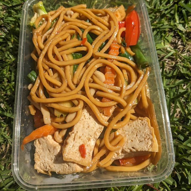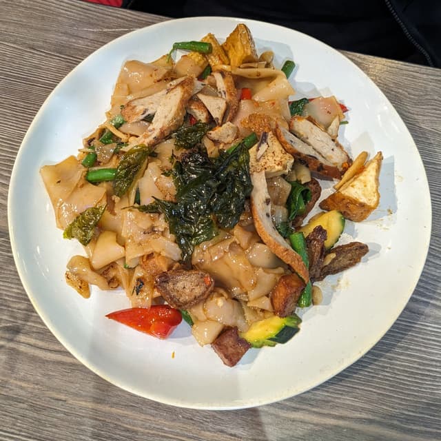 rap attack127 reviewsGood serve size and they adjusted the spice level for me. Has red capsicum, chilli, tofu, flat noodles, green beans, basil, baby corn, cabbage, enoki mushrooms and other tofu productspad ki-mao