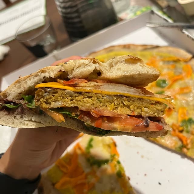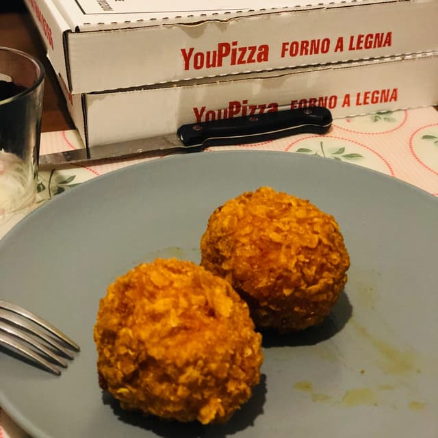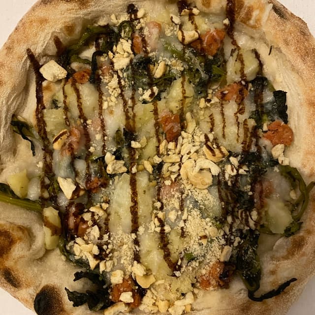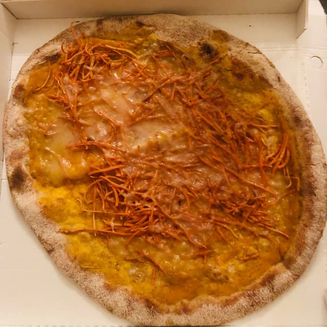 Pizza consegnata a domicilio con zucchine, mozzarella vegetale e aggiunta di patate. Buona e ricca di condimento! Sempre un’ottima alternativa quando non si ha nessuna voglia di cucinare!🤪