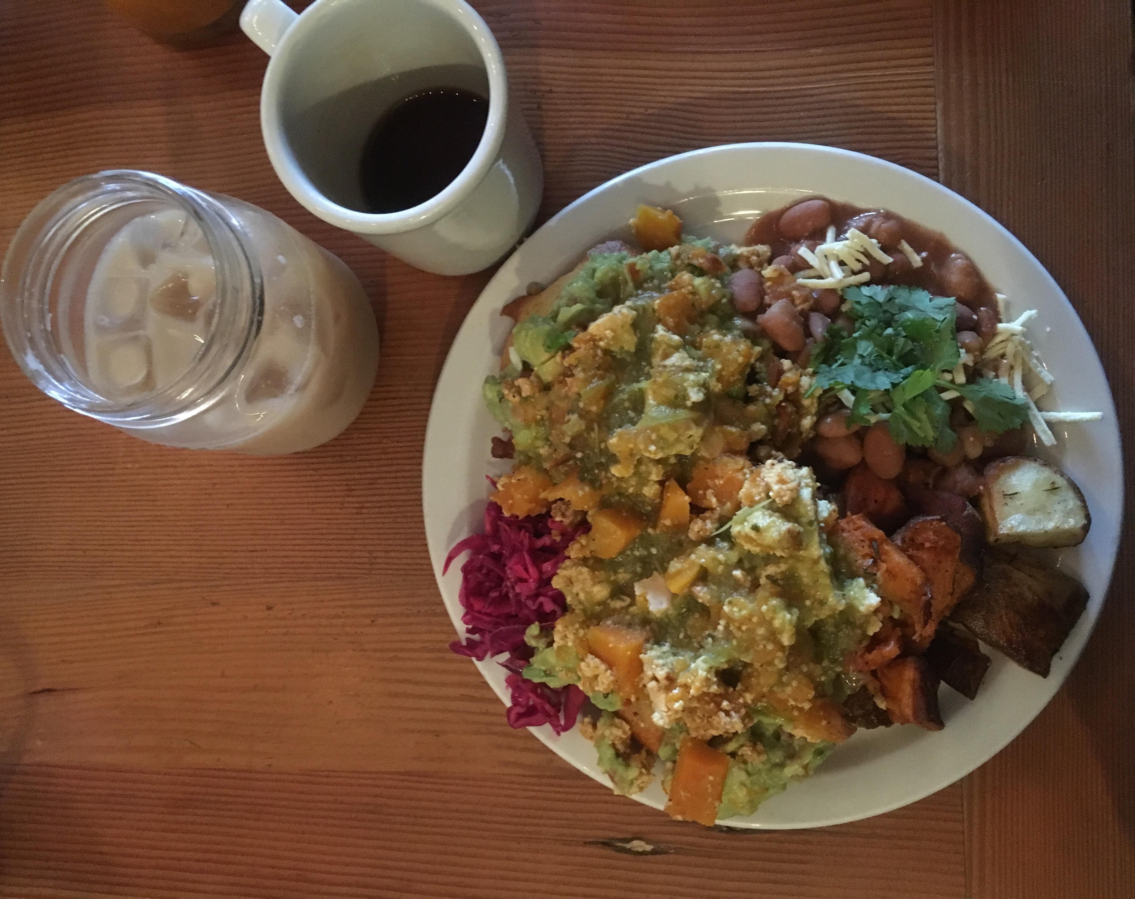 This is my favourite brunch item in all of Vancouver! And I've tried a lot of brunch. It's a butternut squash tofu scramble smothered in guacamole and salsa on top of the most delicious corn bread! Honestly, you cannot go wrong with this beautiful mess. Also, any of their menu items can be modified to be vegan! Their almond milk horchata is also delicious.