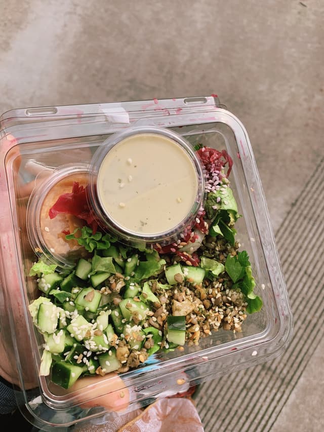 Wow this to go salad is so so good!! I normally get their kale Caesar but this may be my new favorite. This salad is filling and the seed mix is delicious. My only complaint is that Urban Remedy is so expensive and uses way too much plastic.