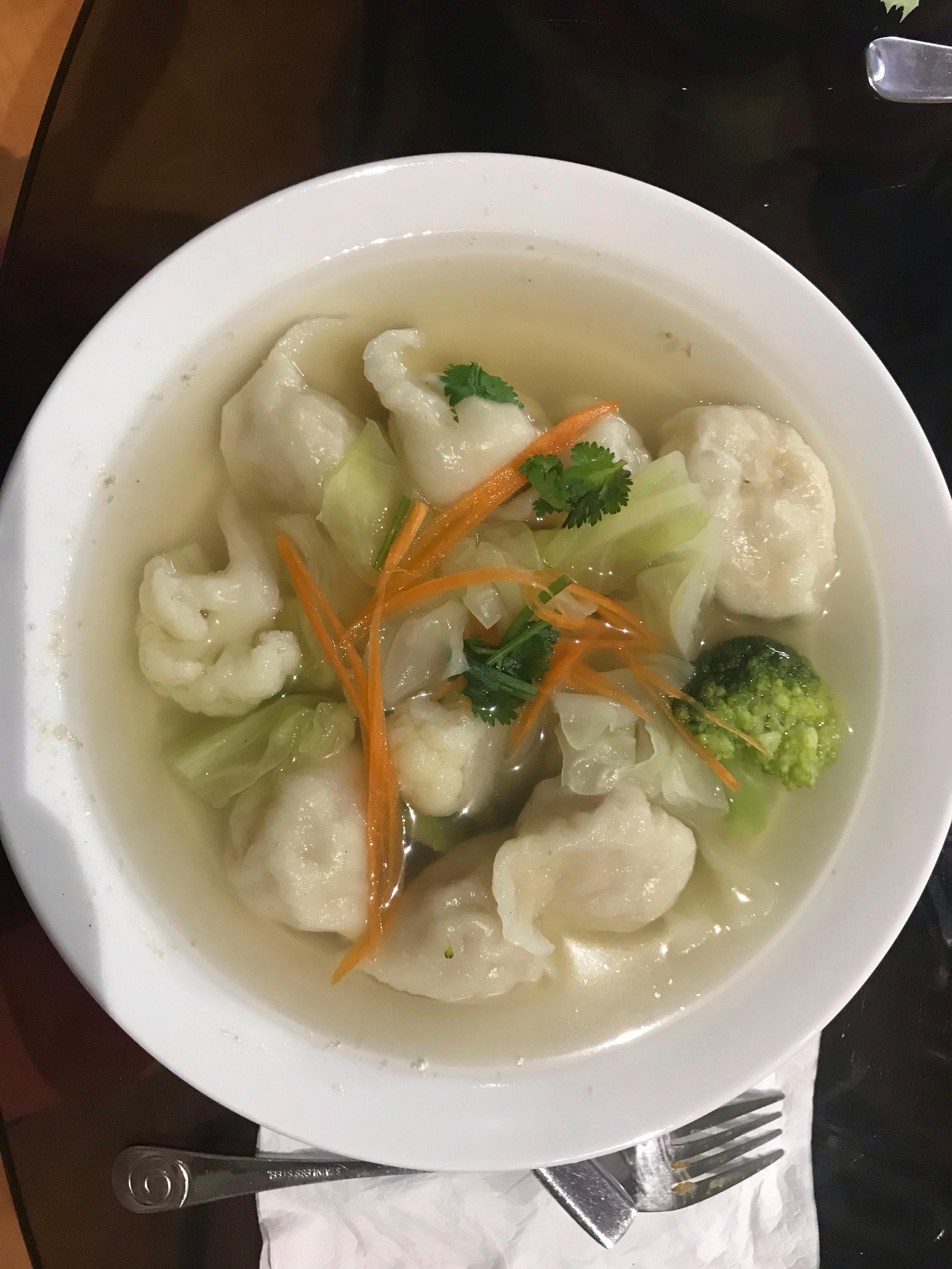This soup really fills you up. 10 big dumplings. Not so many vegetables but that’s not what it’s about.