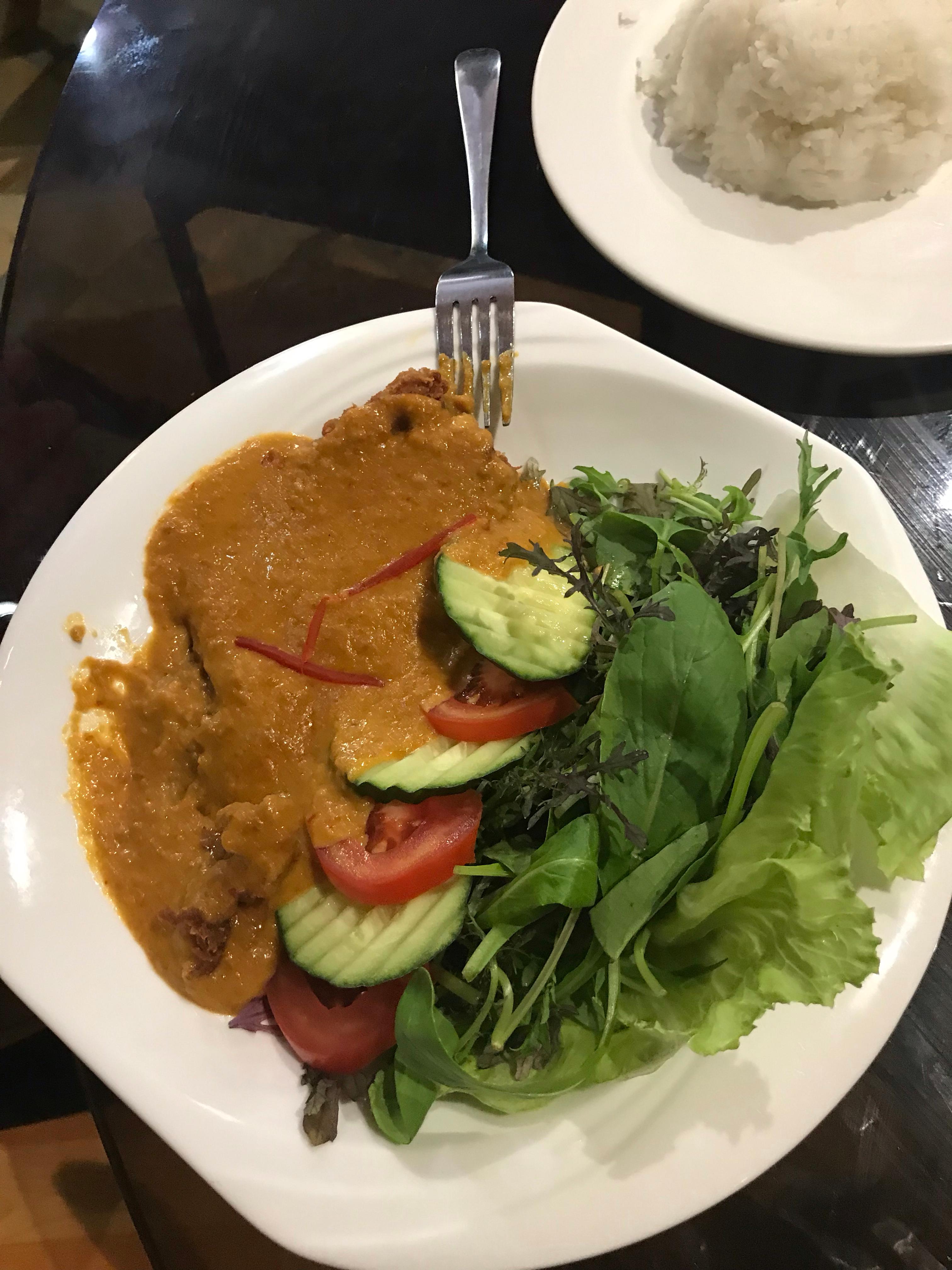 Great crispy fake chicken. The peanut sauce was super yummy. It comes with rice