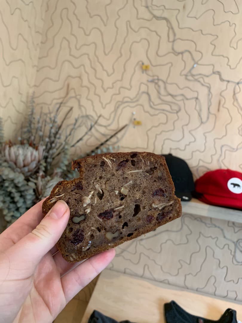 This bread is both wheat free and vegan, major score!! It has lots of yummy walnuts, raisins, and coconut. Totally delicious, equators has great vegan and gluten free options ;)