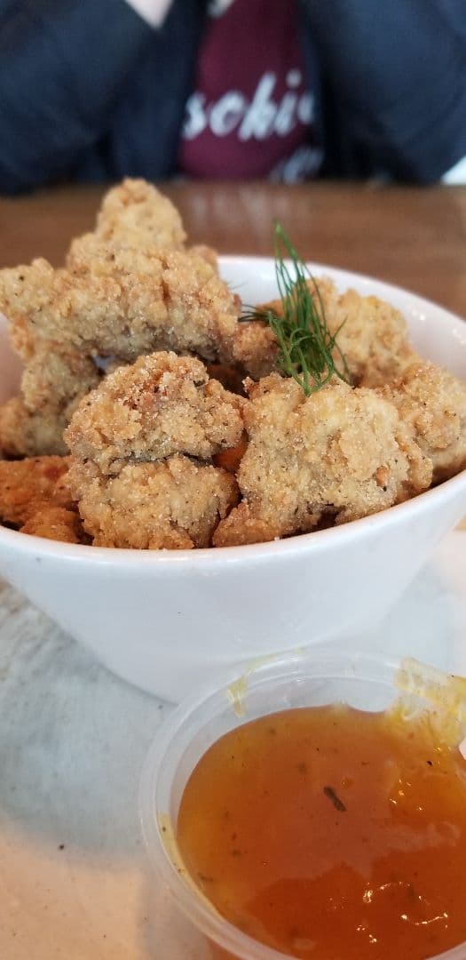 Interesting dish. Good spicy sauce. Never had real popcorn chicken before so it was novel for me.
