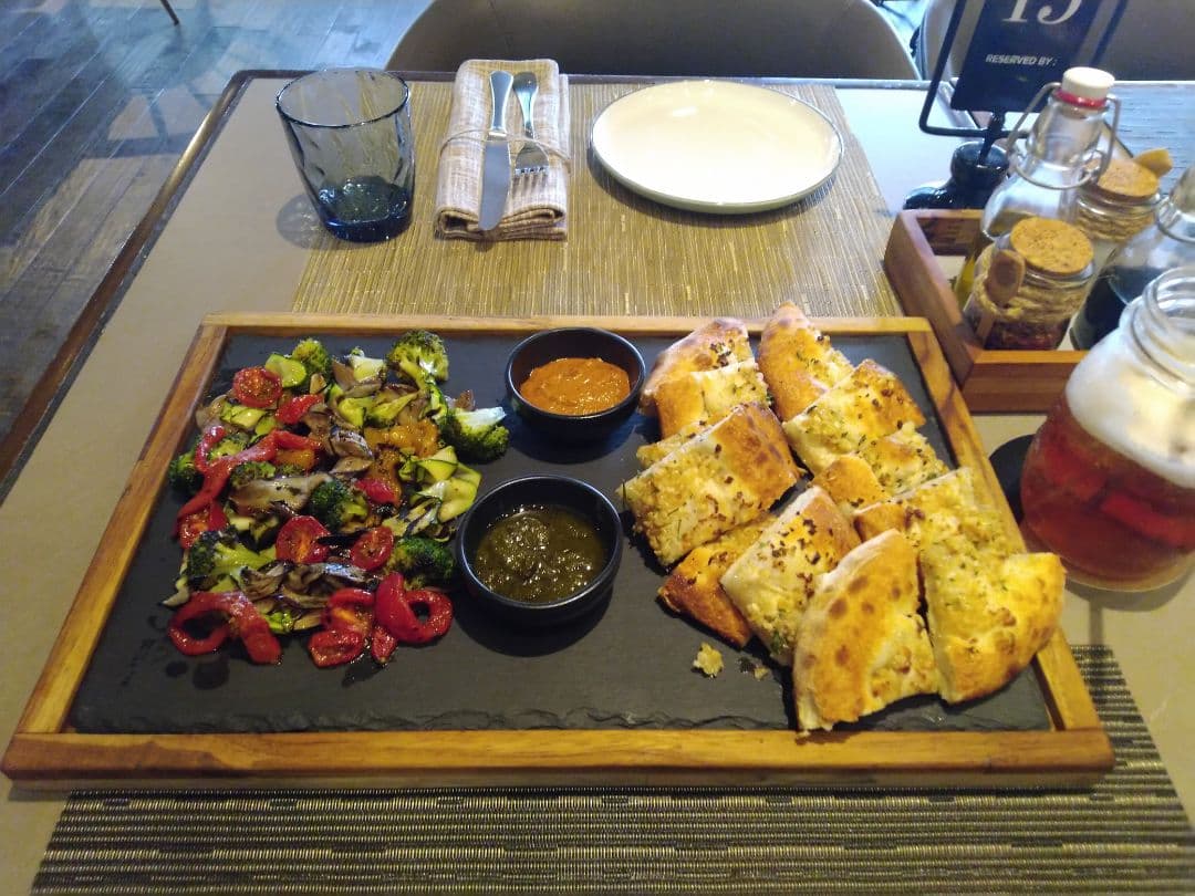 mixed vegetables and 🍄with garlic bread (request no cheese and ask for their vegan sauce)