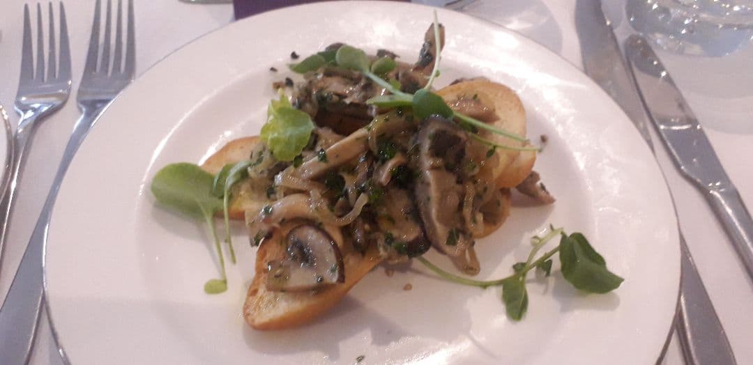 This meal was to die for. The garlic and Mushroom were cooked perfectly and then that on top of the crust bread was fantastic.