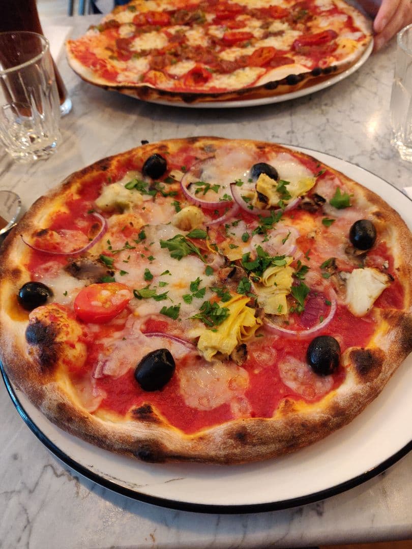The cheese at Pizza Express is absolutely fantastic! I also really like the toppings on this pizza but you can get other pizzas made with vegan cheese if you prefer.