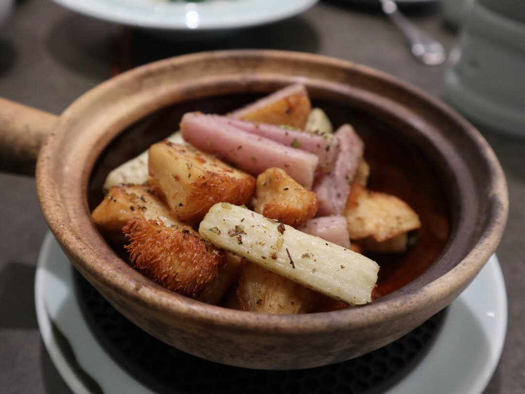 The mushrooms are SO GOOD — chewy and flavourful. This also has taro in it with other veggies, making it a hearty dish.