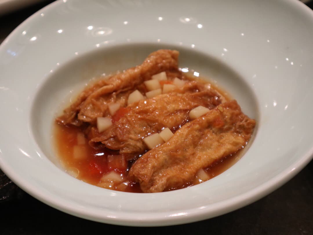 These bean curd rolls are filled with veggies and served in a tomato sauce. Delicious! I do love these but thought this portion was a bit small — perhaps because it’s a dim sum item, they’re smaller than I would usually have.