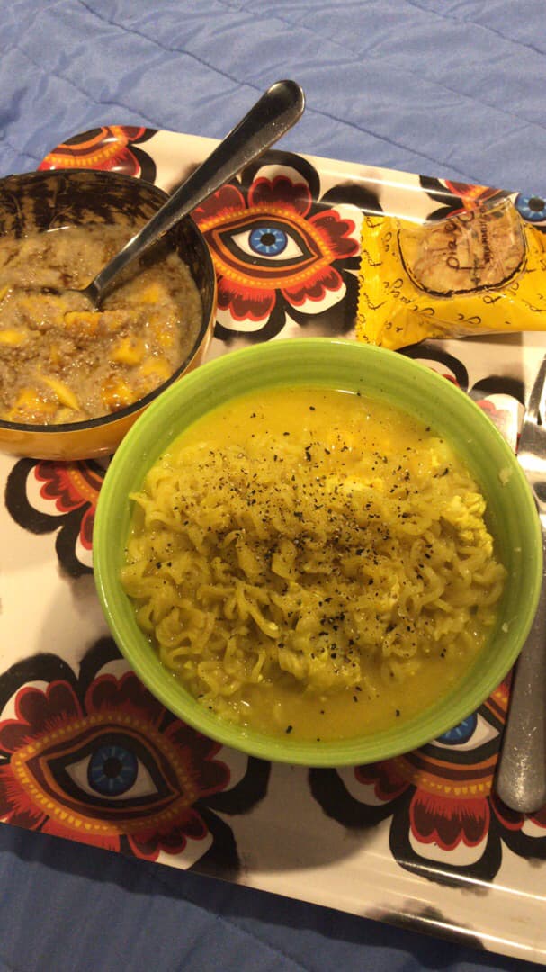 Sometimes all you want are instant noodles, am I right? These are a relic I brought back to SG from the UK ages ago, but I don’t think they really go off... comforting and yummy. They may be chicken flavour but they contain no animal products! Who knew? I always pimp my noodles with extra veggies and spices.