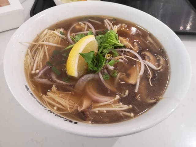 This is their only vegan pho which is always freshly made! The soup is brothy and herby.