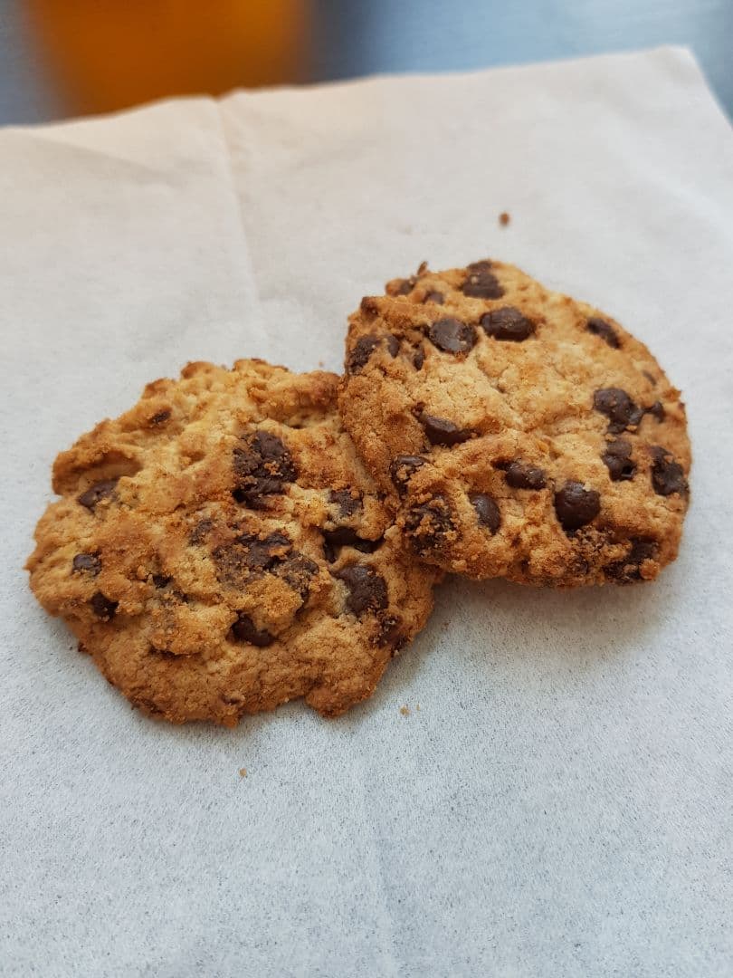 Definitely the best packaged vegan choc chip cookies i have tasted so far! It tasted pretty fresh, not like packaged food at all~ It wasn't too sweet and love how each cookie had a decent amount of choc chips👍🏻Also, try toasting them for a few minutes before eating. It becomes like warm, freshly baked cookies with the choc chips all melted and fudgy. SO👏🏻 GOOD👏🏻😍
