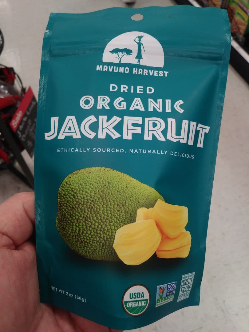 Never thought I'd find dried Jackfruit! Tastes good though! #veganoutreach