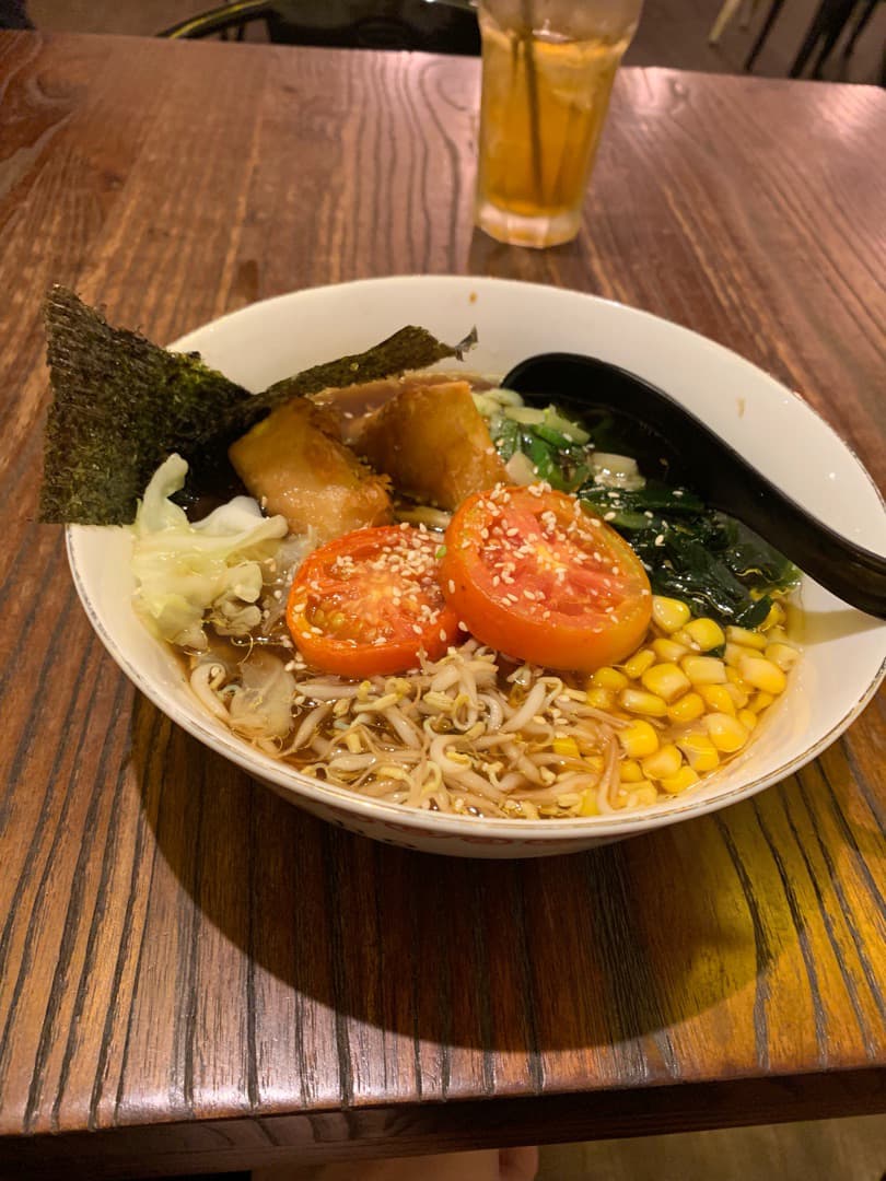 Such a treat to find such a satisfying vegan ramen. Full of vegetables, tofu, seaweed and noodles. The broth is very tasty and delicious. I prefer it a bit spicy but thankfully, they have chilli oil and chilli flakes to add in. #jaan