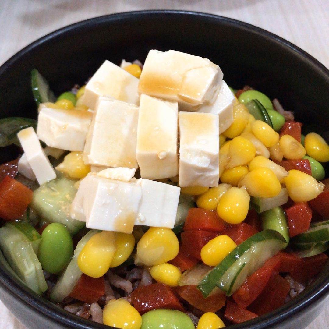 ordered a small bowl with a base of brown rice, which they gave more of than the toppings 🤷♀️ liked the cucumber and sesame shoyu sauce though