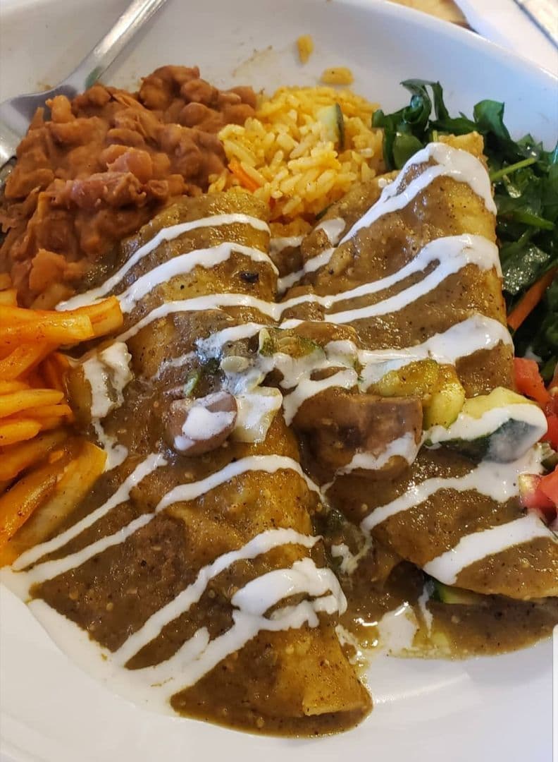 Not your traditional enchiladas. They were very sweet and had a lot of unexpected flavors. It was definitely a surprise but still good with some salsa on top.