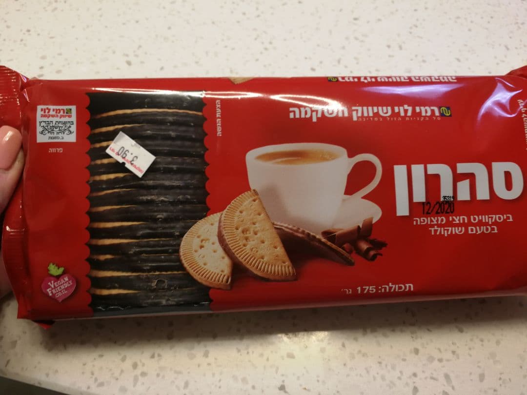 סהרון בטעם שוקולד שהוא טבעוני עם תו ויגן פרנדלי, הופתעתי לראות וכולם אוכלים אותו ונהנים ממנו אפילו יותר ממני. מעולה עם הקפה