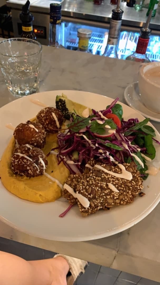 It was a sweetpotato falafel I would say but it was amazing ! Never had that type of falafel before but I quite liked it ! Also the crackers have been pretty tasty and the hummus was good, too.