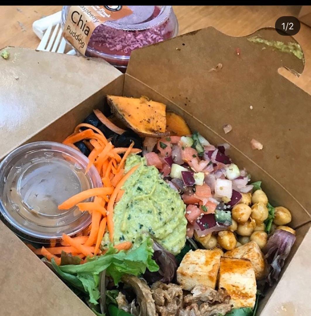 Copper branch is one of my favourite vegan restaurants!!! The Aristotle bowl bowl is something I get almost every time. I get mine with brown rice as the grain, and tofu and the protein. This dish features, mixed Green, carrots, fresh salsa, chickpeas, sprouts, sweet potato, avocado, and even more that I cannot remember!!! delicious dish delicious place. I would definitely recommend to anyone on the go looking to try something new.