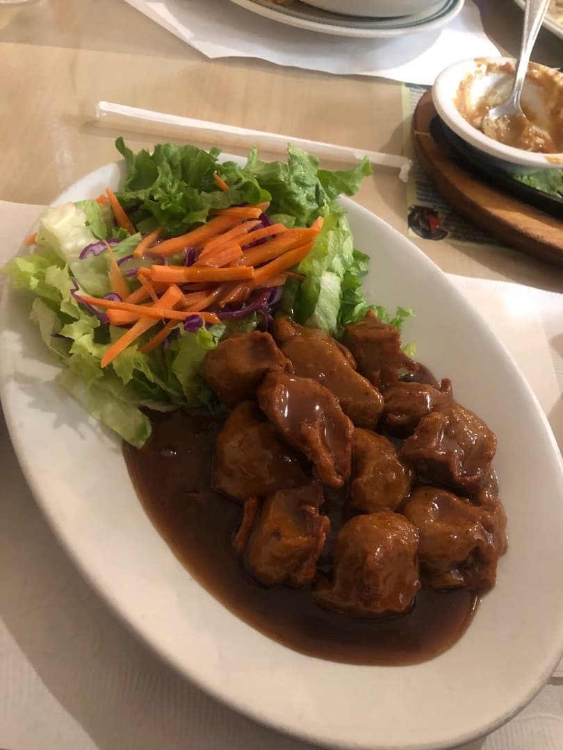 This is the best dish they offer. Sooo yummy. The texture of the chicken is great too, really realistic. Super filling. And i love the salad dressing they use! $10.95, very much worth it.
