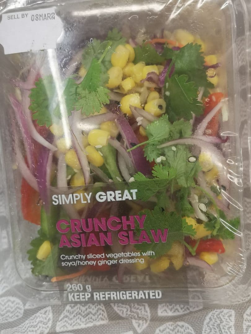 Colorful and crunchy this salad is perfect with any summer meal. The dressing is also very Asian but unfortunately has honey in it so would need to be replaced with a dressing of your own. #pigsnpaws
